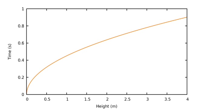 nebo můžeme pokus opakovat pro několik výšek a vytvořit graf závislosti doby pádu na výšce (Obr. 3).